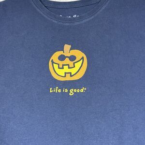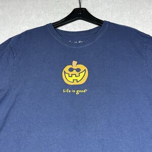Up for sale: Life Is Good T-Shirt Mens Size 2XL Blue Halloween Jack-O-Lantern Crew Neck