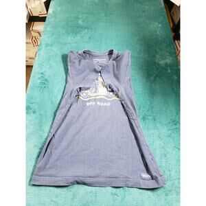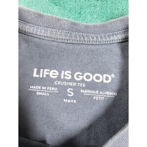Life Is Good Men's “Off Road” Crusher Tee in blue, size small.