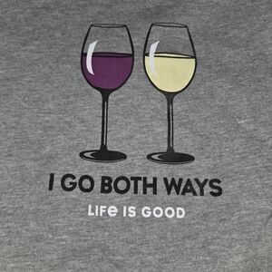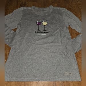 Life Is Good Top Shirt Women Medium Gray Wine Funny Long Sleeve Crew Neck Casual