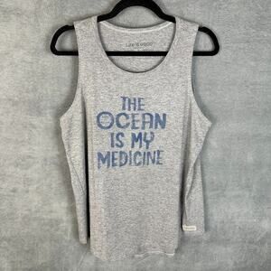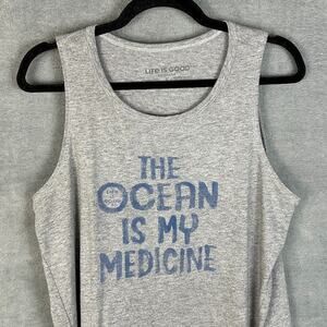 Life Is Good Top Womens Large Gray Crusher Tee Sleeveless Beach Ocean Comfort