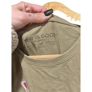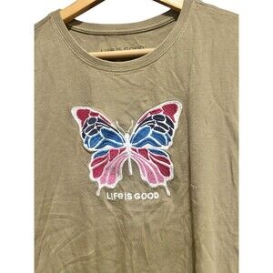 Life Is Good Tshirt Green Short Sleeved Butterfly Embroidered Size Medium