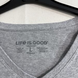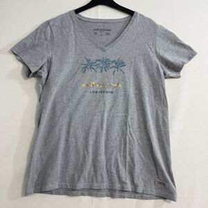 Life Is Good V-Neck T-Shirt Grey Palm Trees Women’s Size Large
