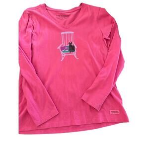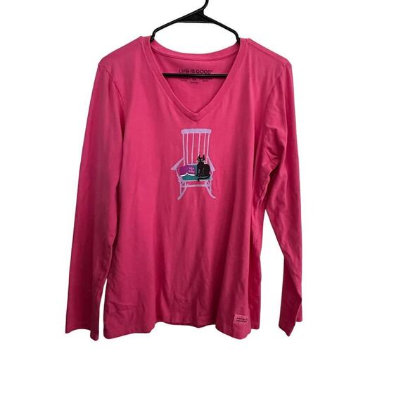 Life Is Good V-Neckline Long Sleeves Rocking Chair Cat Crusher T-shirt Size M