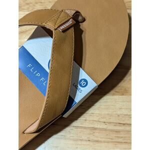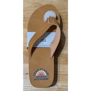NWT Life Is Good Womens Beige Flip Flops, Size 10, Take It Easy Beach Summer Sandals