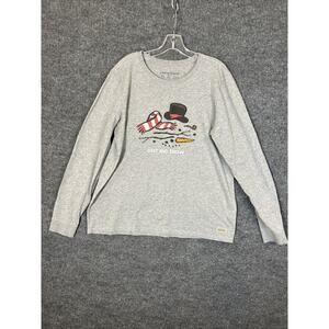 Life Is Good Womens Crusher Tee Size XL Gray Just Add Snow V Neck Snowman Cotton