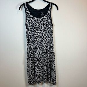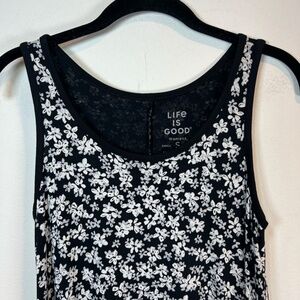 Life Is Good Women's Microfloral Sleeveless Mini Tank Dress Black Beach Sz Small