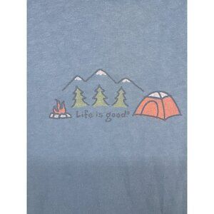 Life Is Good Womens TShirt L Blue Camping Mountains Long-Slv Crew Neck Outdoorsy