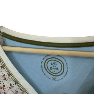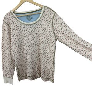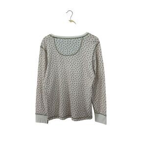 Life Is Good X-Large Thermal Top Long Sleeve White Floral Dot Pullover Cotton Polyester Womens Lightweight Embroidered Logo