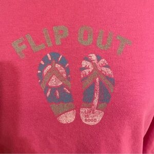 Life Is Good pink long sleeve tee t-shirt with flip flops graphic size medium.