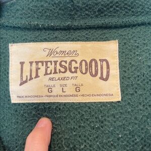 Life Is Good women’s Green Sherpa relaxed fit Hoodie size large.
