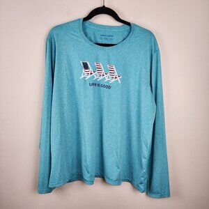 Life Is Good women's XXL long sleeve performance shirt 3 beach chairs Americana