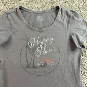 Life Is good Shirt Womens Small Gray Brown Happy Hour Palm Sunset Classic Fit *