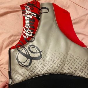 worn about 3 or 4 times, great condition!! sterdy and doesn’t ride up when you’re in the water.