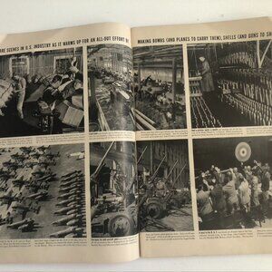 Original vintage Life magazine issue from May 12, 1941, a year of momentous events leading up to full U.S. engagement in WWII. Feature articles include U.S. parachute troops, President Roosevelt, and a fund drive for the British Royal Air Force. Condition is free of tears but numerous creases. Advertisements include Chrysler, Bostonian shoes, Fruit of the Loom, and Oldsmobile, some in full color and others in black and white.