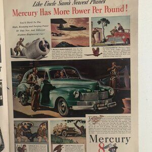 Advertisements include full page color ads for Oldsmobile, Mobilgas, and Camel cigarettes, which all reference the war. Historically and socially, this is another very interesting reflection of the time.
