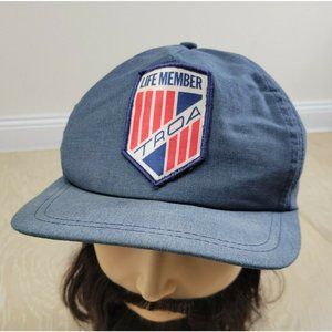 Life Member TROA Member Hat Leather Strapback Bump Front Patch Front Blue VTG