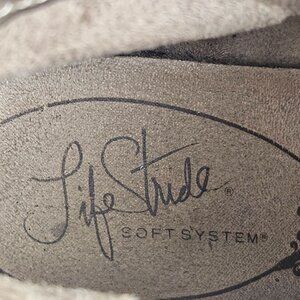 These Life Stride Ankle Boots in a women's size 11W are a stylish addition to any wardrobe. Crafted from Georgette Brown Faux Leather, these booties provide a sleek and comfortable fit for daily wear or special occasions.