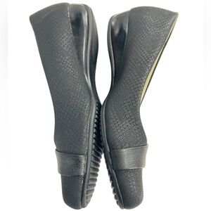 Experience timeless elegance with Life Stride's black flats, featuring a minimalist design and a distinctive crossover detail at the toe man made material. These versatile shoes offer a comfortable flat sole and a rounded toe, making them perfect for both casual and semi-formal occasions. Size 6.5 Like New No Box.