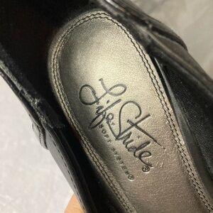 Elegant black heels by Life Stride. Features a stylish silver buckle accent. Perfect for any occasion.
