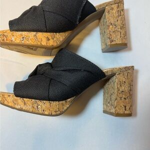 Step into summer style with these chic Life Stride black wedge sandals. Featuring a comfortable cork platform heel (approx. 4”), knotted fabric upper, and open-toe slip-on design, these sandals are perfect for casual days or dressing up a summer outfit.