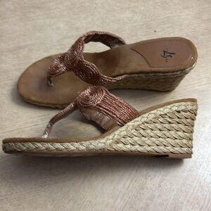 Experience the perfect blend of comfort and style with Life Stride's tan sandals, featuring a distinctive bronze roping ornate scrollwork. The neutral tan footbed offers a soft suede-like finish, ensuring all-day comfort for casual outings.
