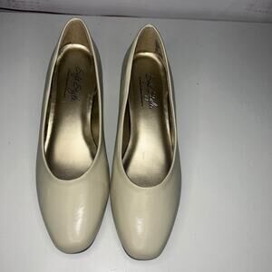 Life Stride By Hushpuppies Khaki Patent Leather Block Heels Womens US SIZE 5