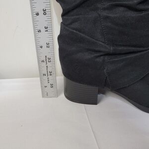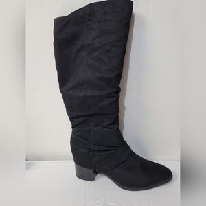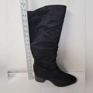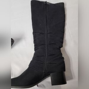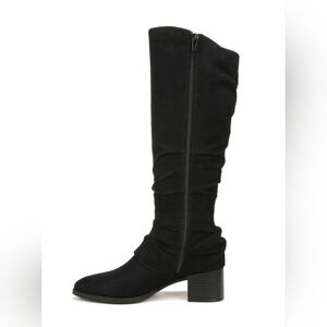 New Without Box Life Stride Delilah Knee High Boots Women's Size 9W. Soft system comfort package provides all day support, flex and cushioning, traction sole, 2 inch stacked block heel, microsuede upper, inside zipper, slouchy silhouette.