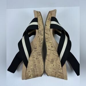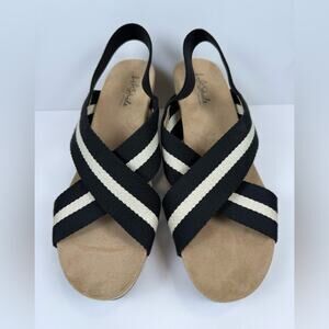 Life Stride Dream Big Criss Cross Slingback Wedge Sandals Black & Cream Size 11
