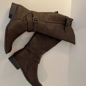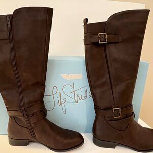 Life Stride Francesca Brown Faux Leather Tall Riding Boots Women's Size 7M ~ NEW