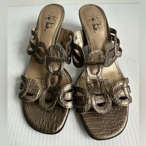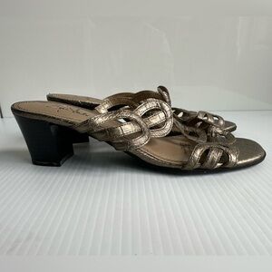 Life Stride Gold Metallic Heeled Sandals Size 8 Dressy Classy Elegant Summer