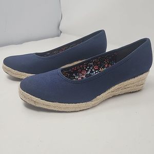 Life Stride Karma Espadrille Wedges Canvas Shoes Slip On Blue Size 10.5/11