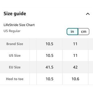 Sizing is faded in the interior of the shoe but believed to be 10.5/11M based on measurements and Life Stride sizing chart