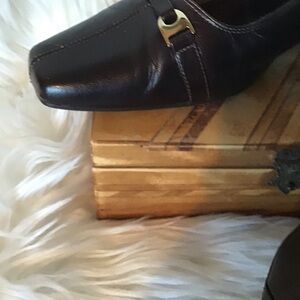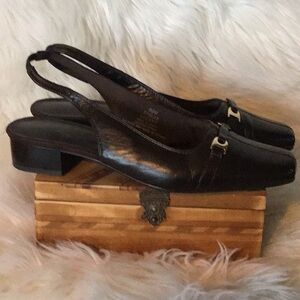 Life Stride Lucent brown square toe leather slingback flats gold color metal detail 8.5