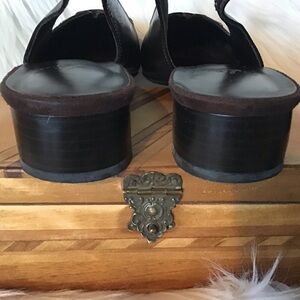 Life Stride Lucent brown square toe leather slingback flats gold detail 8.5