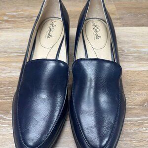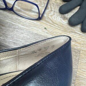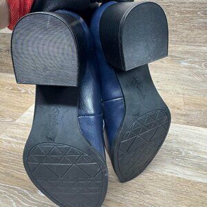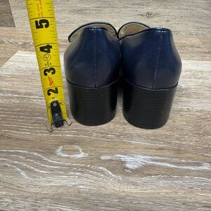 Elegant navy blue heels. Comfortable block heel design. Perfect for any occasion.