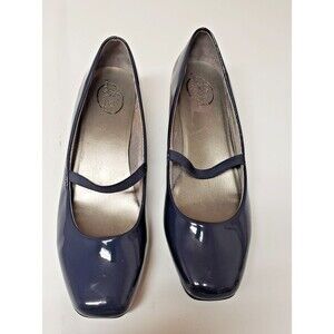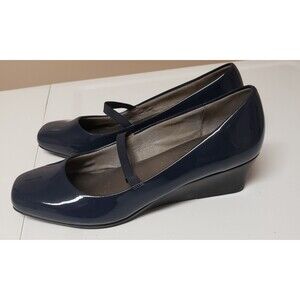 Life Stride Simply Comfort Mary Jane Patent Leather Navy Blude Wedge Sz 10M PO-E