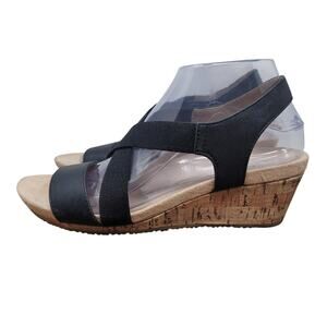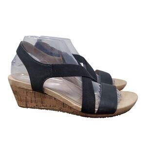 Life Stride Soft System Flex Black Strappy 2" Heel Summer Sandals 7.5M