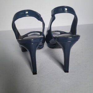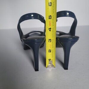 Life Stride Soft System Invest Black Patent Open Toe Slingback Heels. Size 7.5