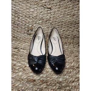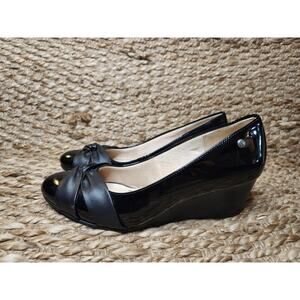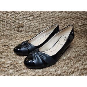 Life Stride Soft System Wedge Heels Size 8.5 Black Faux Leather Shiny 2"