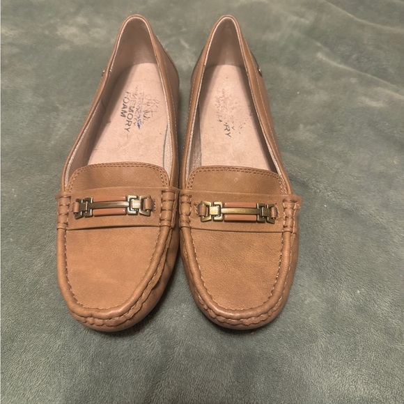 Chic tan loafers with memory foam. Ideal for everyday comfort. EUC from smoke free, dog friendly home. Shows no wear except the wording is faded.