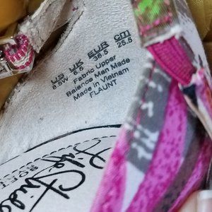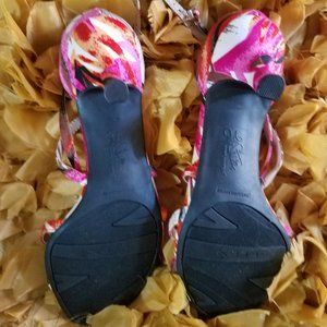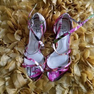 Life Stride sandals featuring a strappy design in a vibrant print. The tapered heel offers a flattering height boost while distributing weight evenly for enhanced comfort.