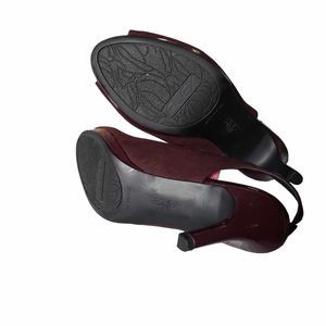 Life Stride Velocity Burgundy 8.5 Fabric & Synthetic 4" Peep Toe Slingback Heels