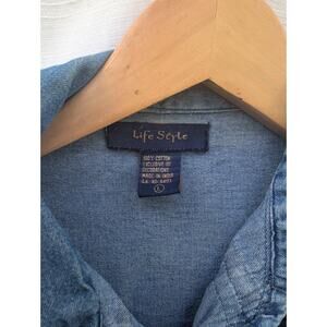 Life Stride Vintage Womens Patchwork Button Up Denim Shirt Sz L 90s Animal Print. Shirt is in good condition but does have signs of age and wear. Slight discoloration around the collar area. See all photos and ask any questions prior to purchase.