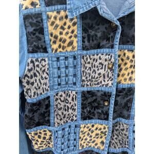 Life Stride Vintage Womens Patchwork Button Up Denim Shirt Sz L 90s Animal Print
