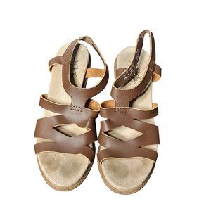 Life Stride Women's Persephone Brown Wedge Heel Sandals Size 7 Neutral Summer