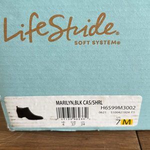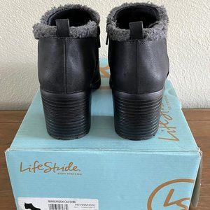 Life Stride ankle boots, Size 7M, Black w/gray fur trim, Zip inside, 2.5 inch heels, excellent condition, very comfortable