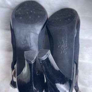 Life Stride black stretchy fabric heels peep toe back adjustable strap s…