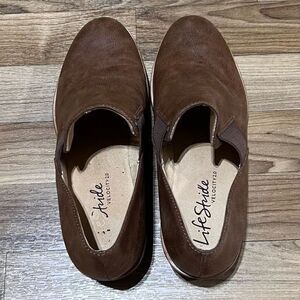 Life Stride Zora Wedge Slip on Faux Leather Upper Round Toe Brown Black Size 10W