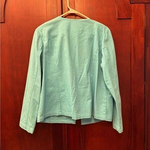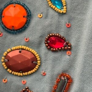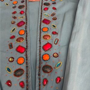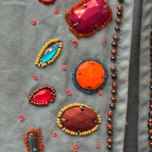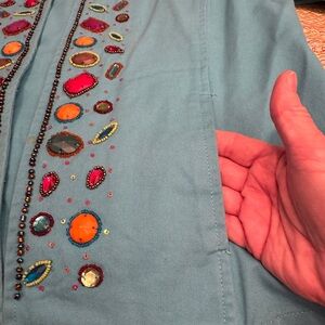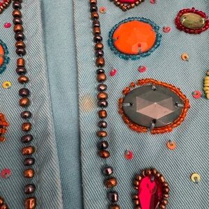 Jeweled and bedazzled, Lightweight Aqua Blue Denium Jacket. Wonderful for a Cruise or Travel