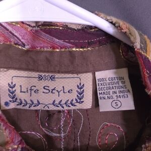 Life Style Lightweight Button Down Jacket Size Small Artsy Art To Wear